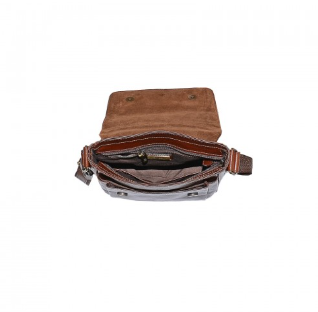 Pasta de homem à tiracolo, em pele de bovino com curtimenta vegetal, de origem italiana. O interior contém dois separadores e dois bolsos c/ zip.