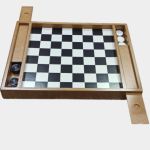 O jogo clássico de estratégia em que o objetivo é eliminar as peças do seu adversário. As peças movimentam-se na diagonal, sobre as casas escuras, para a frente e uma casa de cada vez. Para capturar as peças do adversário a peça pode mover-se para a frente ou para trás.
